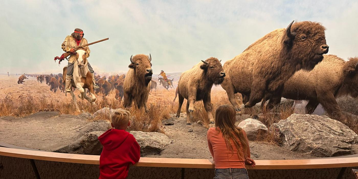 When kids enter the orientation gallery at the Manitoba Museum, they're greeted by the dramatic bison hunt diorama that transports them back to the prairies circa 1870. While there is no sound in the exhibit, the scene is so intense that kids imagine hearing the thundering hooves of a stampeding herd of bison as a young Métis hunter on horseback skillfully chases them.