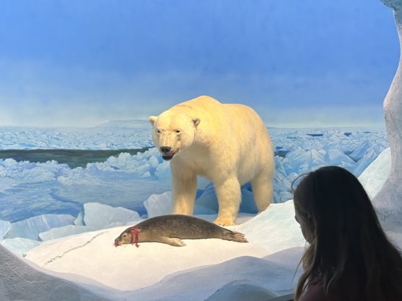 As the northern lights fade with the sunrise, kids come eye to eye with a massive polar bear hovering over its latest prey, a ringed seal. The image of the kill - and mother nature at its rawest - sticks with kids. They may gasp, or hide behind a parent, but know they'll quickly understand that Manitoba has a subarctic region and is home to polar bears.