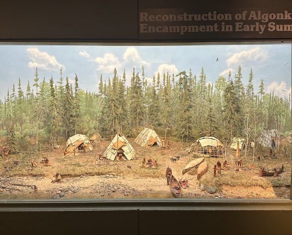 At the entrance of the boreal forest gallery, kids love to marvel at the impressive miniature Algonquin summer camp scene. Spend a few minutes asking them to point out the details. Where are the children playing with the pups? What kind of meat have the grown-ups harvested? Do you see any elders? The display is captivating and kids learn so much from it without needing to read.