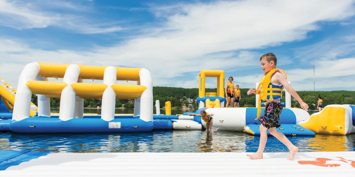 Meanwhile at Pinawa, Hoopla Island invites all to leap, launch, laugh on its water trampolines, climbing walls and obstacle course.