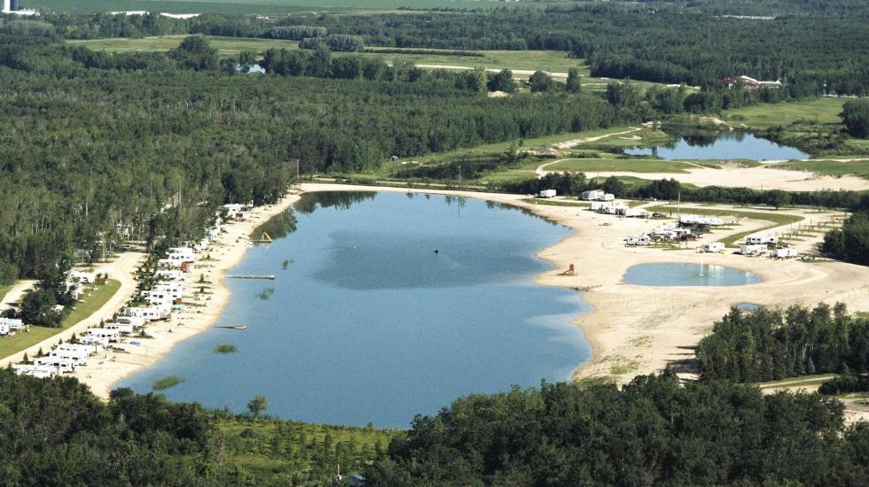 CherryHill Living is a peaceful, gated RV community just outside Steinbach. The park sits on 100 acres of forest surrounding a spring-fed lake. Swim, paddle or float your way through the day, then unwind under a canopy of trees on your private lot. Sites are fully serviced with water, sewer and 30-amp power. Wide lots and quiet paths give this spot a relaxed, spacious feel. Next door, Quarry Oaks Golf Course offers 27 holes and rolling fairways. In Steinbach, you’ll find groceries, restaurants and a great aquatic centre if you’re craving a change of pace.