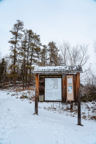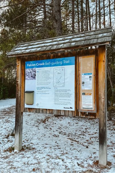 Just when you thought the weekend is over, there is always room for one more adventure. Find yourself trekking through the trails and through the trees as you depart. The final stop on your restful weekend away takes you across the #1 highway to Falcon Creek Trail. This 2km looped trail is a beautiful self-guided excursion that will have you winding through the wilderness. The trail is adorned with picturesque winter scenes, and trail features for that optimal 'I was here' insta-worthy capture. Take in the fresh air and aroma of wild brush and hear your feet crunch through the snow beneath. Hear the smallest of sounds from rustling branches to birds in flight.