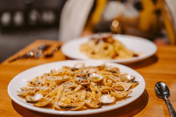 Delightful dining awaits upstairs at 1964 Restaurant. Italian cuisine and an impressive inventory of wines from abroad will keep your palette curious. Begin your meal with warm, in-house seasoned baked bread with truffle oil and balsamic for dipping. The appetizer of all appetizer's arrives next with the ultimate Italian charcuterie board. An assortment of cheeses, antipasto and varied cured meats on a wooden board...shaped like the country of Italy. How suiting! Take advantage of the vast pasta offering and try the carbonara or tagliatelle con vongole!