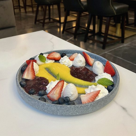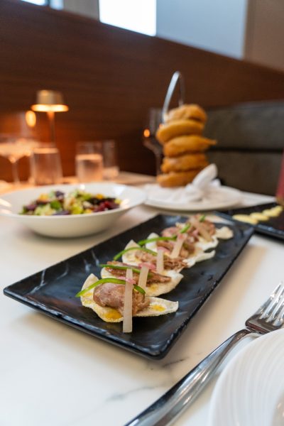 The yuzu pavlova is a light and fresh finish to this culinary adventure. Enjoy yuzu curd, meringue, caramelized hazelnut and strawberry compote a sweet send off to this flavourful, fun fusion food experience.