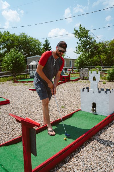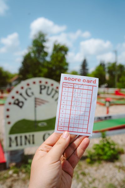 It's all fun and games until someone... loses the game. After cooling off with some fun in the sun on the water, we headed to Bigg Putts Mini Golf in Onanole to begin quite the heated game of mini golf... and I'm not only talking about the temperature! We started off by being able to choose our own golf balls and that was neat. It was a competitive game of 18 holes that consisted of windmills, loop-de-loops, jumps, distractions, humorous banter and an assortment of obstacles. Who doesn't love a little friendly competition of mini golf? I think it's safe to say that the winner gets treated to free ice cream.