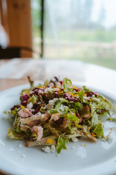 The Foxtail Cafe in Onanole is a tasty tucked away eatery just off the highway where Onanole meets Riding Mountain National Park. All dressed up and with somewhere to go, we found our way to Foxtail. We couldn't have found their beverages named more suitably after our days adventure. We started off with their Black Bear and Wishing Well cocktails. All we can say is that the Wishing Well beverage came with a surprise... how charming. For eats, we kept it light and tapas style. After all, we are on a romantic weekend. We ordered up their 204 chips and dip, the dry ribs, the tacos, and the beet root and goat cheese salad. Needless to say, we had no room for dessert! The cool and casual atmosphere is fun for summer and has that chefs kiss atmosphere.