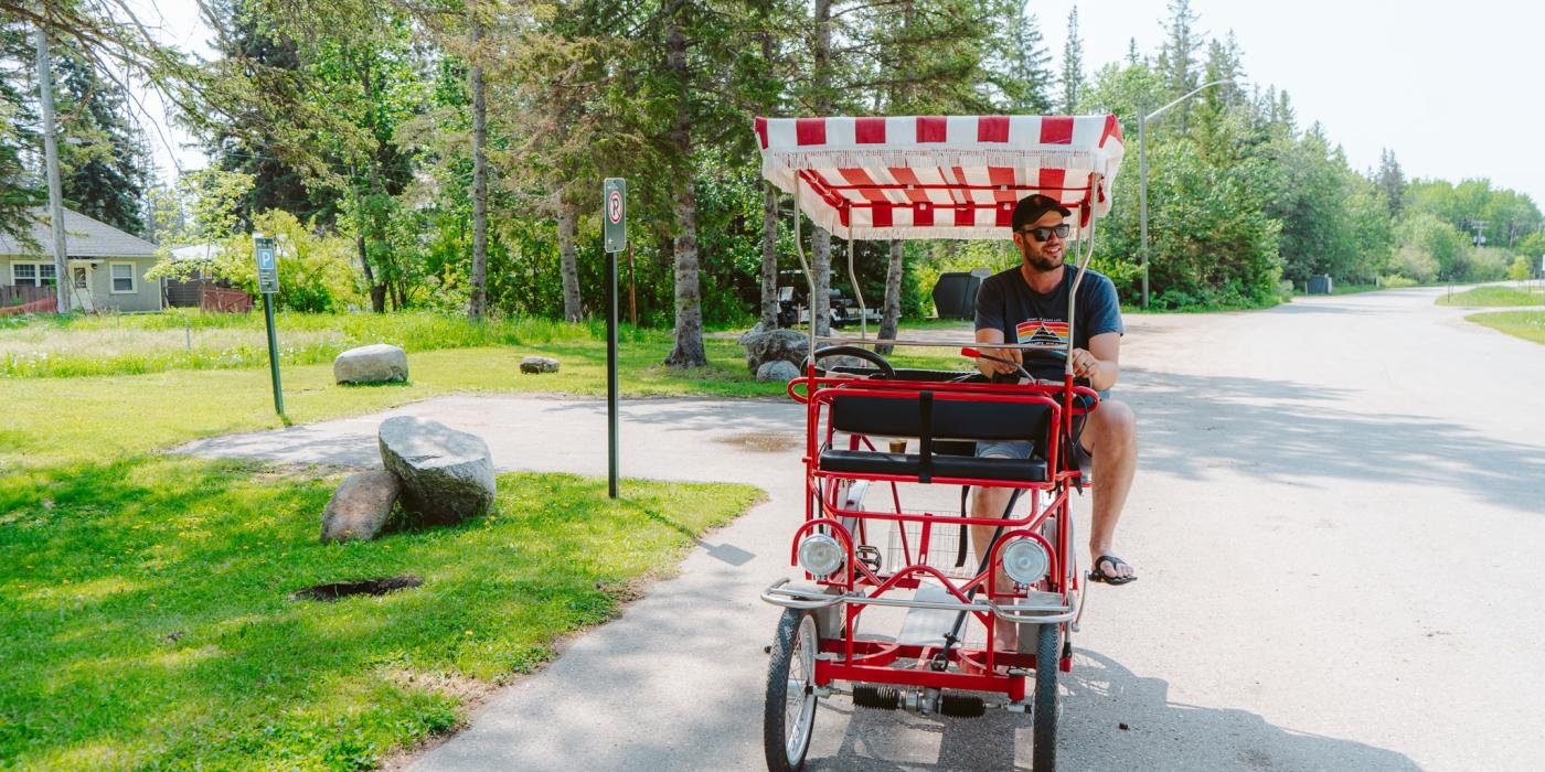 Nothing says the power of bonding like sharing the load, literally. Joint peddling efforts to get your vessel up and around the Wasagaming townsite will not only test your patience but your passion for fun and teamwork. We woke up on Sunday morning, grabbed iced coffees from Lakehouse and were desperate to squeeze in one more activity on our weekend excursion. Nothing will wake you up in the morning like willpower! Rent bicycles in the town of Wasagaming and see the town from two wheels or four! Choose from Clear Lake E-Bike Rentals, Beavertails Bike Rentals, or Clear Lake Gas & Bike Rentals.