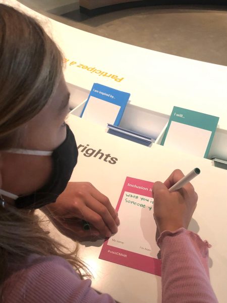 After taking in the all artwork and a few interactive displays, we headed up a level to the Expressions Gallery for the perfect wrap up of our visit. The gallery asks guests to join the conversation about human rights by writing down their thoughts on topic cards and displaying them.