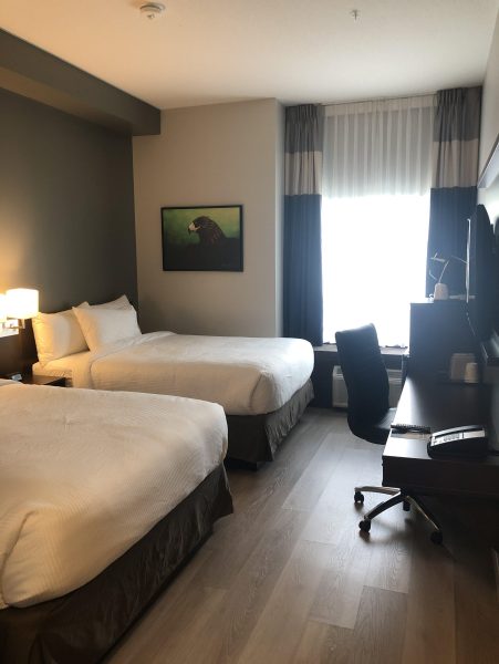 Still wet from our afternoon at Splash Island, we checked in our hotel Microtel Inn & Suites, located just two minutes away, also overlooking Crescent Lake. Owned and operated by Long Plain First Nation, the Microtel Inn is still sparkly new, having just opened in late 2019. The modern lobby and rooms are adorned with gorgeous, original Indigenous paintings. The casual dining room off the lobby serves a generous breakfast spread each morning. The airy rooms with high ceilings are furnished with the most comfortable beds, according to a 10-year-old traveller.