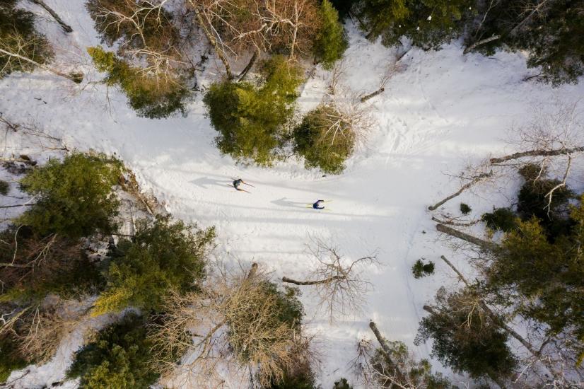 Walking or snowshoeing on ski tracks can damage the trail and create hazards for skiers. On multi-use trails, stick to the designated walking side to keep the tracks intact.