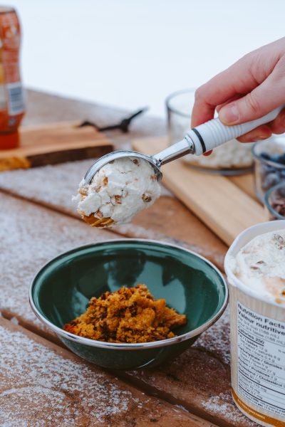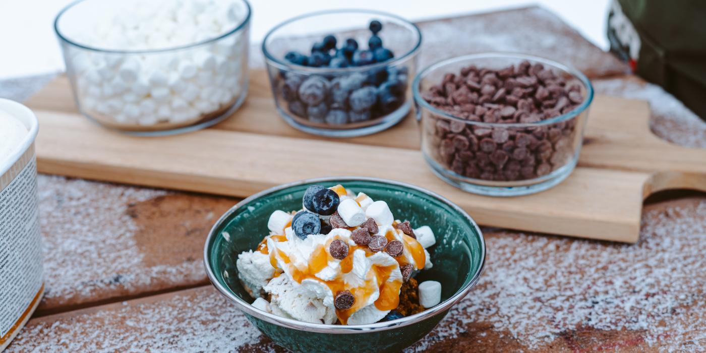 We know you're outside, and we know it's winter. All the better! Treat your family to a DIY topping bar. Everyone loves their cookie treats a little differently. Get creative! Besides, no worries about refrigerators around here.