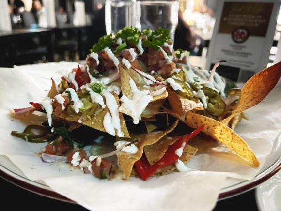 The club room's food menu is unique with a delicious array of upscale bar food dishes. The nachos are a must try, made with traditional tortilla chips, spiced ground beef, melted cheese, pickled onions, jalapeño, Pico de Gallo and lime crema. Pictured above is the vegetarian version, sans beef. 10/10!