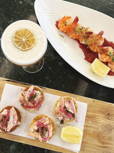 Order shareable plates like the smoked goldeye (so fresh, so light, so delicious), the jumbo prawns (a classic pairing with many cocktails) or the cheese board (because who doesn't love to indulge in cheese?) and chit chat over candlelight while taking in the sights and sounds of the hotel. It's the best spot for people watching.