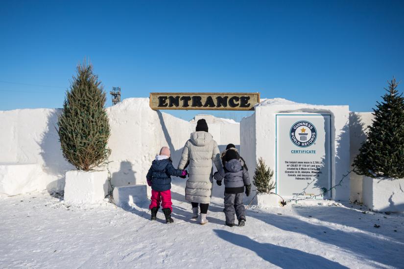 Amaze in Corn, located 15 kms south of Winnipeg in St. Adolphe, is home to the world’s largest snow maze that holds the official Guinness title. The maze spans over 30,000 sq. ft. and uses over 300 truck-loads of snow, making a labyrinth that will take a family over 45 minutes to navigate. Along the way, encounter warm-up fire pits and snow sculptures to help navigate the snowy passageways. Other activities on the grounds include a giant snow climbing hill, a sky-high toboggan run, horse-drawn sleigh rides and an ice bar serving hot chocolate for the kids and hot toddies for the parents.