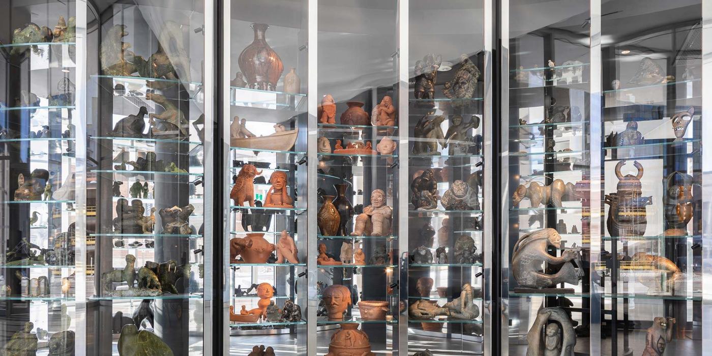 Winnipeg Art Gallery's new addition, Qaumajuq (pronounced kow-ma-yourk), houses more than 14,000 pieces of contemporary Inuit art in a showcase visible vault that reaches three storeys high. The first of its kind in the world, Qaumajuq combines art and technology to create direct connections to the land, people, and culture of Canada’s North.