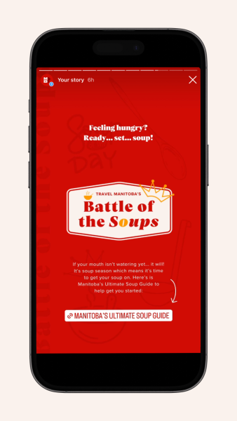 We were on a mission to discover Manitoba's most popular soup. We put out the call for help, and you answered. When the frosty winds of winter sweep through Manitoba, there's no better way to warm your soul than with a steaming bowl of soup. It's the ultimate comfort food, and here in the heart of Canada, we take our soup seriously. That's why we hosted "Manitoba's Battle of the Soups," a sizzling showdown of flavours, fun, and community. We invited Manitoba to be the judge to determine Manitoba's most favoured soup. For three weeks, there were two battles every day on Travel Manitoba's Instagram Stories from November 1st to 29th. With over 26,000 votes and 32 soups in the bracket, it came down to two soups; french onion and broccoli and cheddar. With only a 14 vote difference, broccoli and cheddar took the title of Manitoba's Ultimate Soup. There was shock, there was confusion, there was celebration. On November 29th, we crowned our 2023 soup champion!