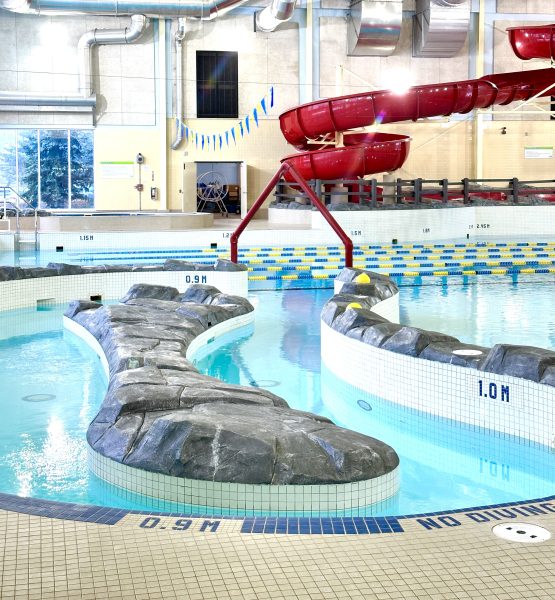 Under the same roof is the Shindleman Aquatic Centre where splish-splashing fun awaits in every corner. There are six swim lanes, a lazy river, kiddie pool, big red waterslide and a 14-person hot tub—all inside the light and bright space.