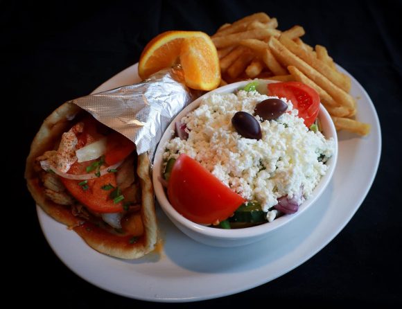 Stop for lunch at Over The Coals where the bacon double cheeseburger poutine promises to refuel the hungriest in your crowd. Greek specialties are on the menu here including pita wraps, souvlaki and Greek salad loaded with feta.