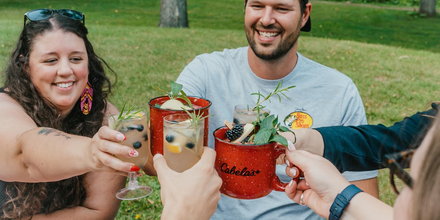 Grab some ice and pop it into your mocktail shaker. (PS Any sealable container or jar with a lid works just fine). Add some fresh mint, blackberries and finally add your Pop Bar Blueberry Lemonade! Do not add the sparkling cider just yet. Give it a shake and pour your mix into a Cabela's mug with ice already in it. Now add the sparkling cider. Try a 50/50 ratio or what best suits your taste palette. Garnish with a sprig of fresh mint and a sliced green apple and blackberry skewer.