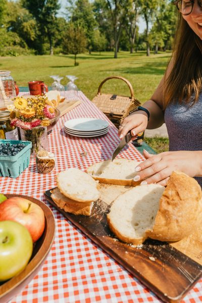 Break the bread, cut the cheese, all the idioms with twice the fun. Tell the jokes, enjoy the company and live in the moment. Share in your day, talk about fun past-times and feel like kids again! Optional edible add-ons for the picnic could include cucumbers, jams, jellies, mustards or greens. Get creative!