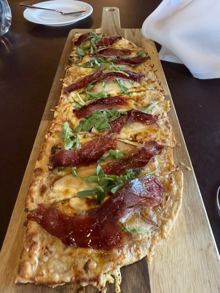 We kicked things off with a tarte flambee (French flatbread). We chose the Duck a l'orange tarte (House made duck prosciutto, seared pears, creme fraiche, arugala, white wine and fresh orange gastrique) and it was incredible. The Flatbread was light and was the perfect vessel for the duck which was bursting with complex flavours.