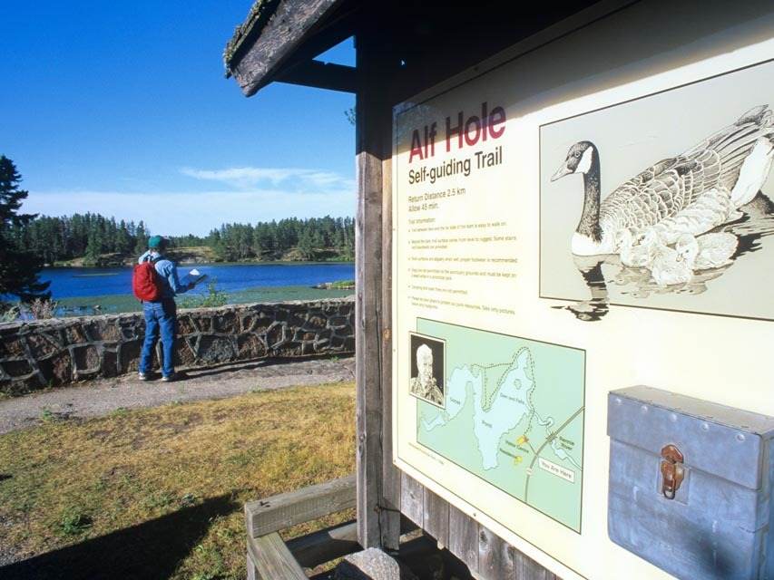 Alfred Hole Goose Sanctuary and Visitor Centre provides an upclose view of goslings in spring and fall during migration. The Centre features an interpretive program, displays, exhibits, self-guiding hiking trail and an observation gallery overlooking a small pond. School programs and group bookings available. Contact the Park Interpreter for more information at 204-369-3157.