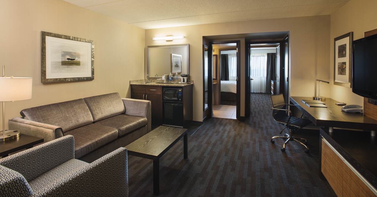 Enjoy the spacious rooms and convenient location of the Hilton Winnipeg Airport Suites hotel. This Winnipeg airport hotel is ideally located in Winnipeg Airport Industrial Park with easy access to all that downtown Winnipeg has to offer. Use the complimentary airport shuttle service to and from the hotel. Relax in the extra space of the two-bedroom suite featuring wireless high-speed internet access.