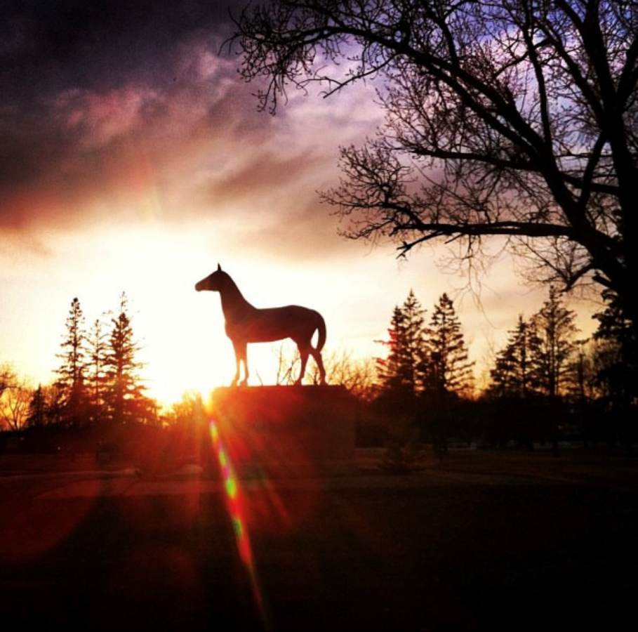 Legend of the White Horse Plain honours a tragic Aboriginal legend of a beautiful Assiniboine woman and her Cree bridegroom who were pursued by her rejected Sioux suitor.