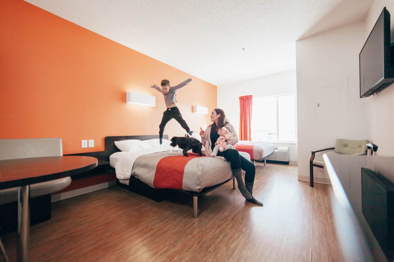 Newly built hotel, all rooms include 32" LCD TV, bathroom with granite countertops and raised wash basin, wood-effect flooring. Free morning coffee, Internet, local phone, expanded cable. Kids stay free and pets stay free.