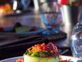 Enjoy a five-course meal featuring herb-crusted chicken breast with brie cheese, crispy rice cake, carrot puree, snap peas and strawberry gastrique.