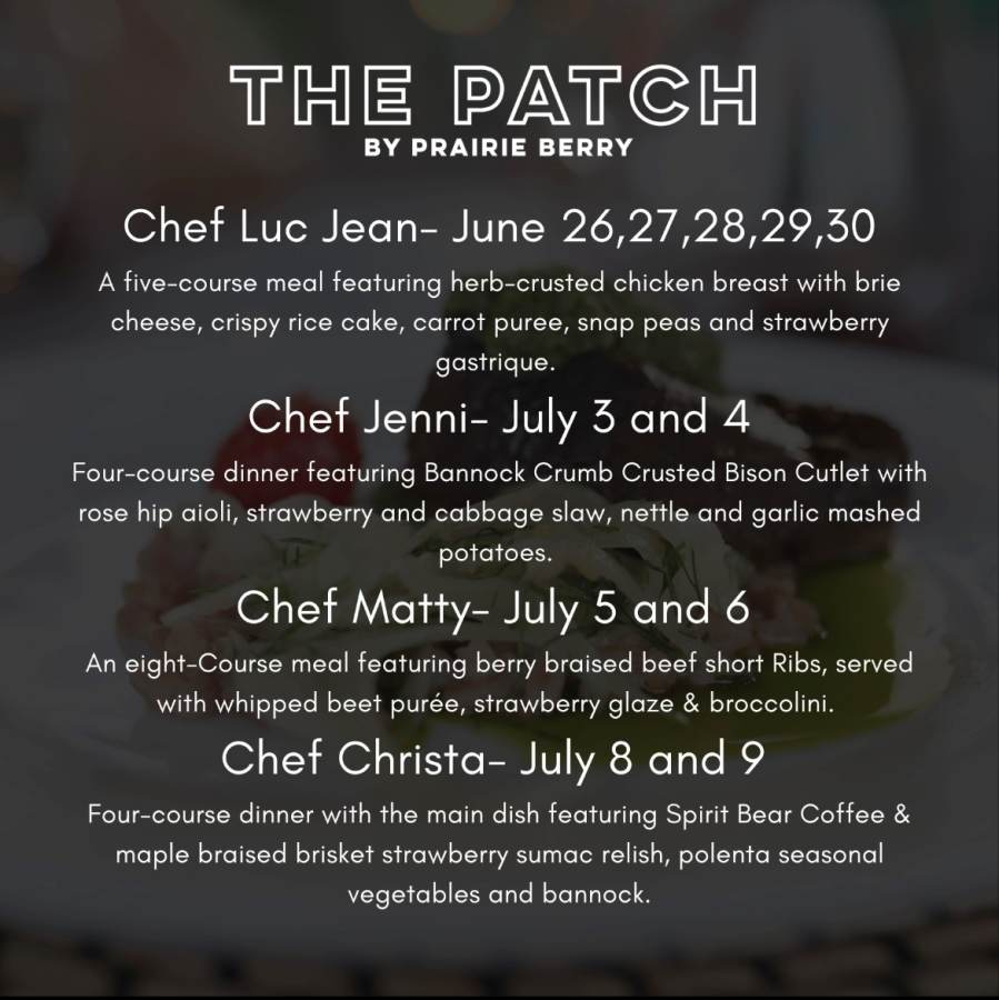 Prairie Berry is a Strawberry Farm located 10 min south of Winnipeg. In 2020 Prairie Berry Farm decided to host Farm to Table Dining Experiences. Guests enjoy a 3-7 course meal served directly in the strawberry patch. The dinners are only held during the short 2-3 week picking season in the beginning of July so that guests can see the berries in the field as they eat a berry inspired meal. Each meal is prepared by local chefs who incorporate an element of strawberry in each dish. They use fresh ingredients to create a decadent menu for guests to enjoy. Guest choose the dinner based on the Chef, the meal, and the date. This season we have 4 different chefs joining us.