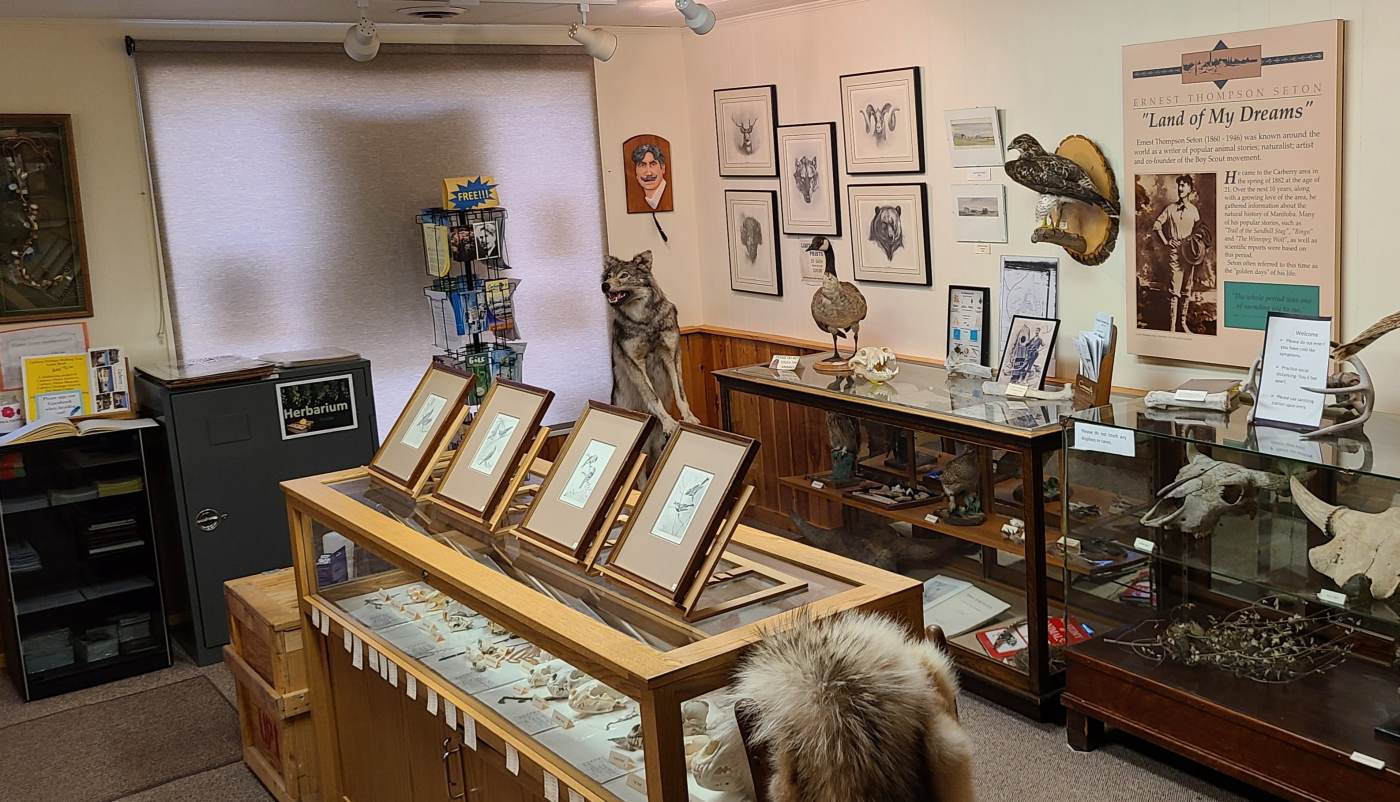 The Seton Centre is a little museum nestled in the town of Carberry, Manitoba. Our museum is based on author, artist, and naturalist Earnest Thompson Seton, who spent many of his days exploring the wildlife and nature in the Carberry area. He described this time as his "Golden Days". We have a great collection of books he has written as well as many of his paintings here. We also have some taxidermy animals on display. Come visit us, we can show you around!