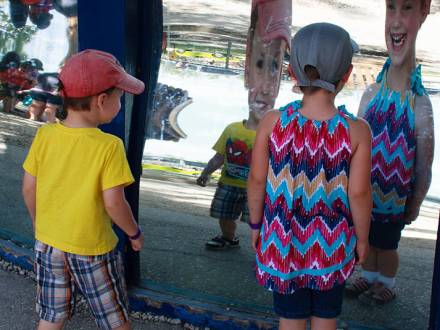 Outdoor amusement park with over 20 rides and attractions, featuring a half-mile train ride, carousel, giant ferris wheel, bumper cars, roller coaster, antique "Tin Lizzie" car ride, wide variety of kiddie rides, mini-golf, gift shop, arcade, food concessions. Free parking, free gate admission.