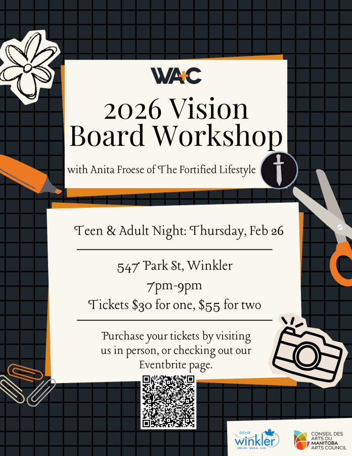 Do you want to try again with your New Year’s Resolutions? Then our 2026 Vision Board Workshop will be perfect for you! Join Anita Froese from The Fortified Lifestyle at the WA+C Centre on February 26th to create some inspiring vision boards full of attainable goals for the new year!
