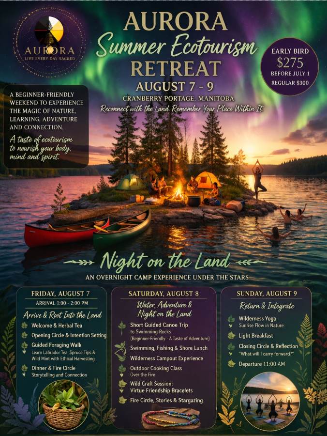 The AURORA Summer Ecotourism Retreat is a beginner-friendly, immersive experience that offers a taste of life on the land—through guided adventure, hands-on learning, and heart-centered connection.