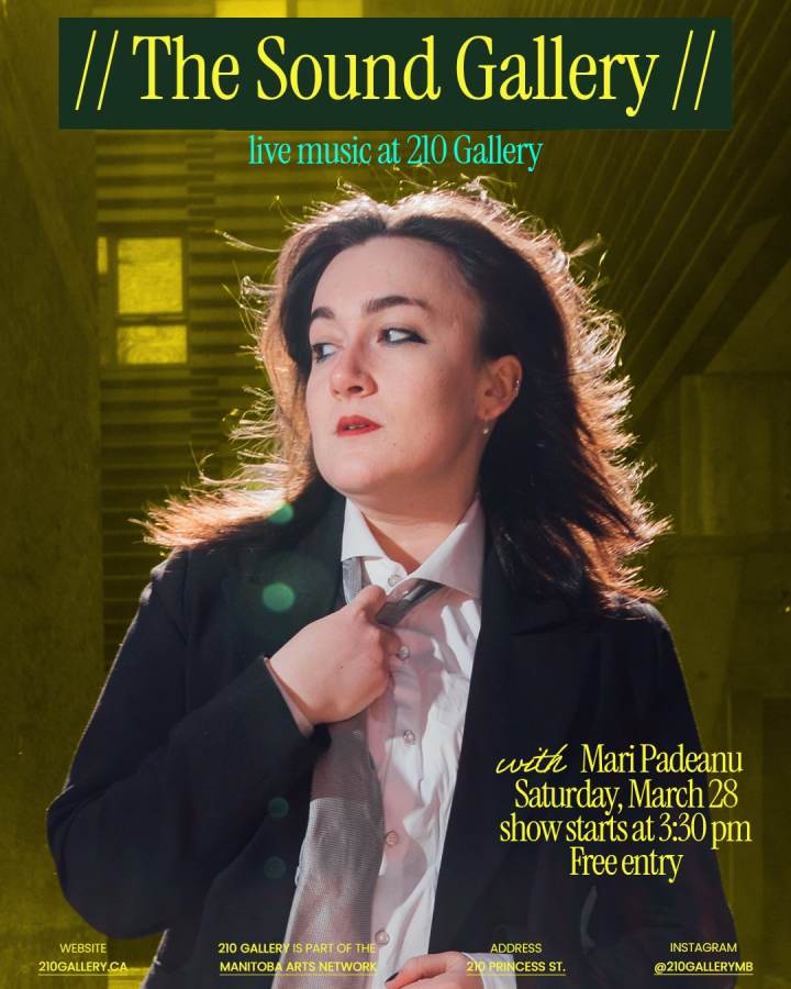 Join us for the next Sound Gallery session at 210 Gallery, featuring live music by Mari Padeanu on Saturday, March 28 from 3:30 PM onward.