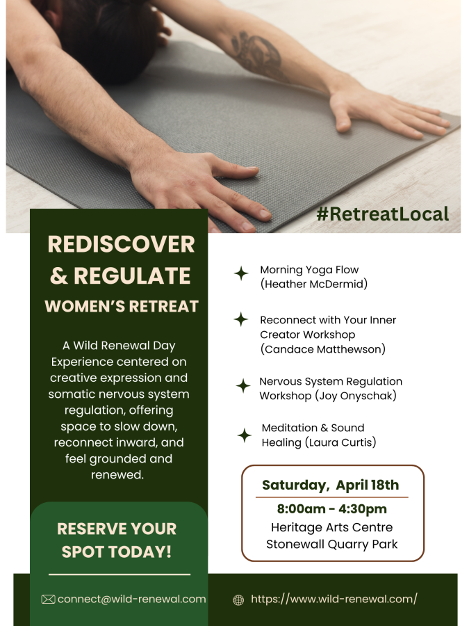 A Wild Renewal Day Experience centered on creative expression and somatic nervous system regulation, offering space to slow down, reconnect inward, and feel grounded and renewed.