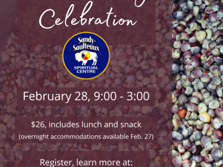The Haudenosaunee annual cycle of thanksgiving ceremonies includes this late Winter/early Spring event, featuring the Haudenosaunee Thanksgiving Address. An Anishinaabe knowledge keeper will share traditional knowledge and teaching about seeds, plants, and medicines. Sandy-Saulteaux Spiritual Centre (SSSC) staff will share about the SSSC garden and provide small packets of seeds from their garden, with a note describing the plant and a recipe, to be shared with participants. Participants are encouraged to bring seeds from their own gardens and share them with others also. A Rocha Manitoba will participate and will share about their work as well.