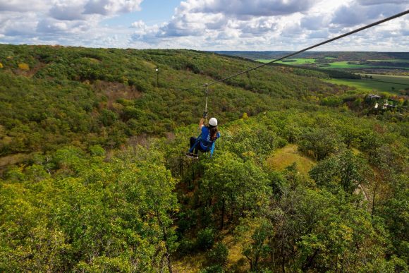Add a jolt of adrenaline to the day with an action-packed adventure to Hy Wire Zipline Adventures located 30 km west of Pembina Valley Provincial Park. Hy Wire offers five or eight-line tours that have guests soaring 200 ft. high above the Pembina Valley for distances as far as 1500 ft.